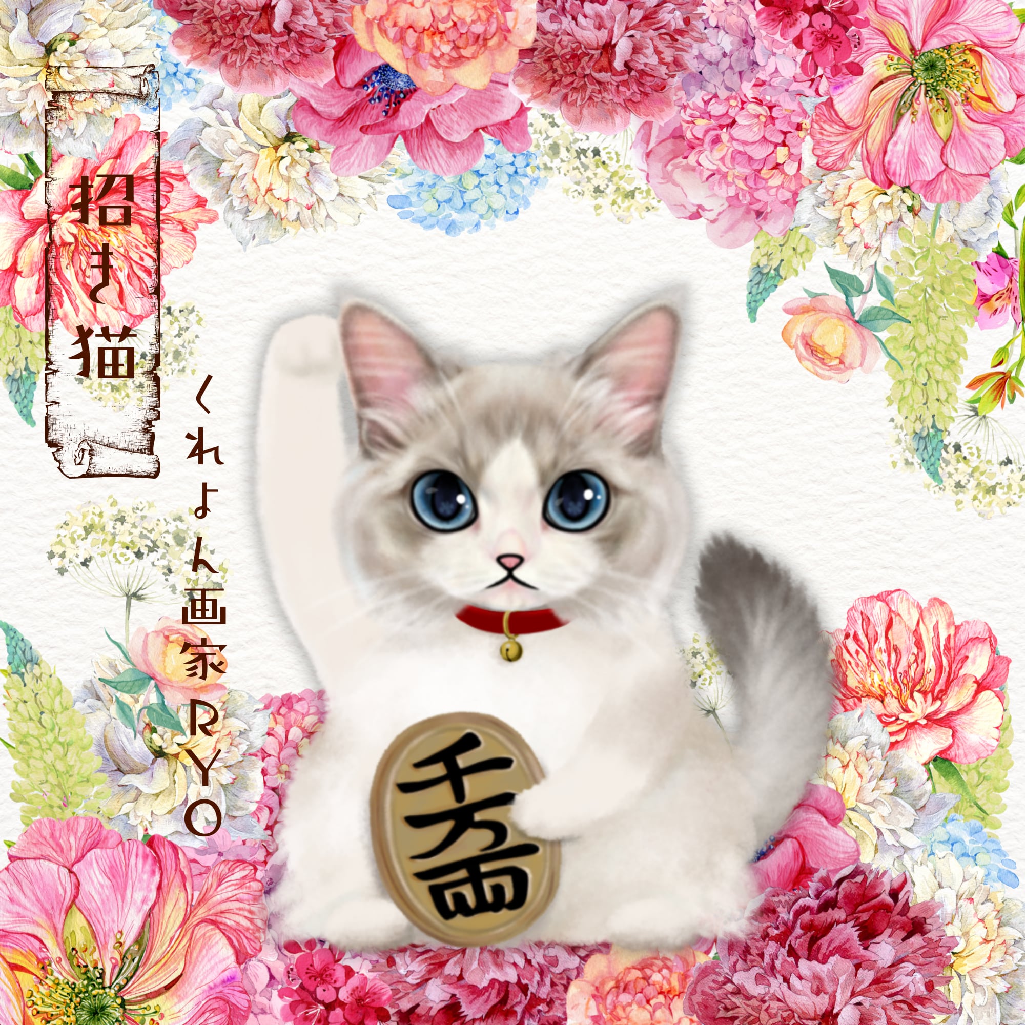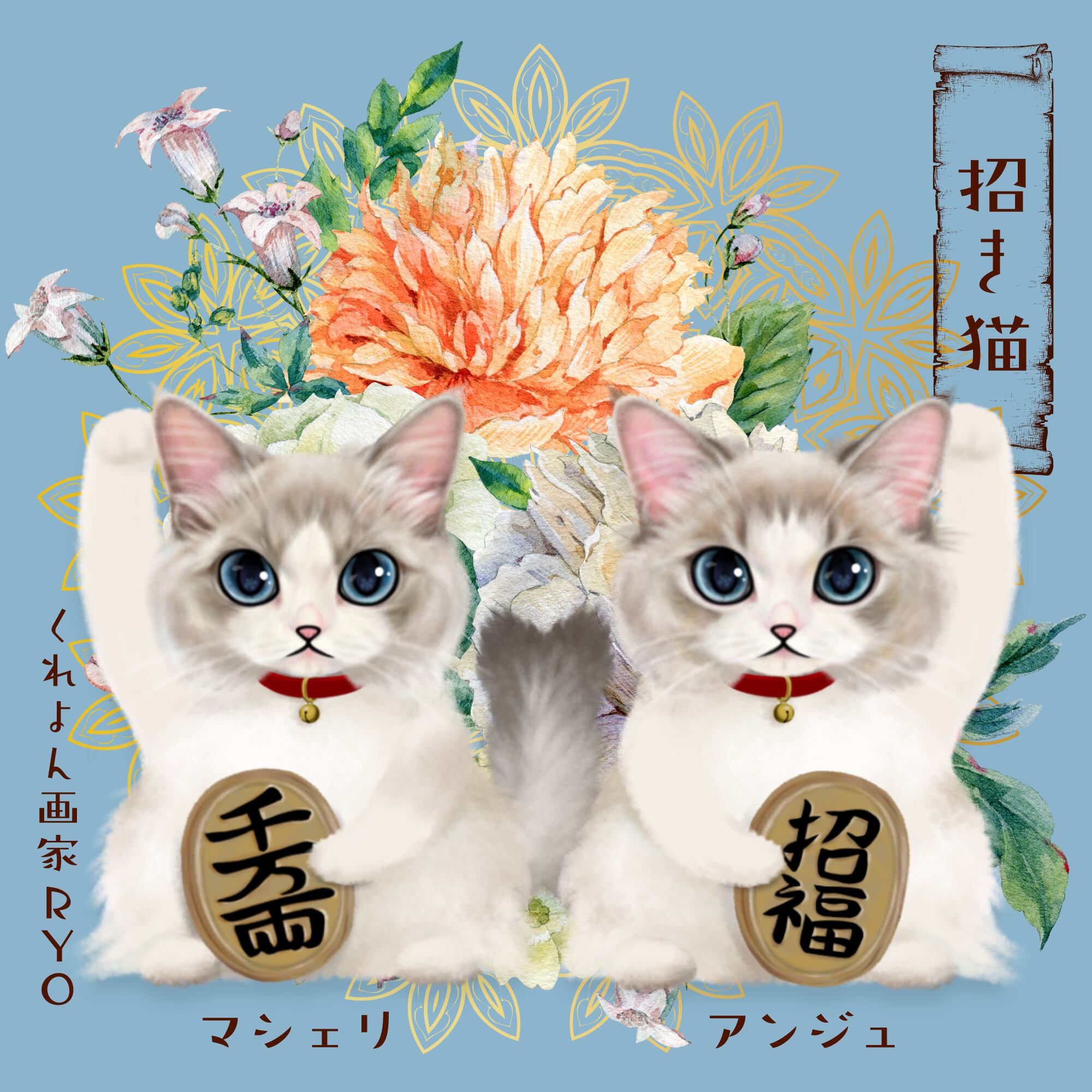 デジタルイラスト、招き猫イラストのグッズオーダーとなります