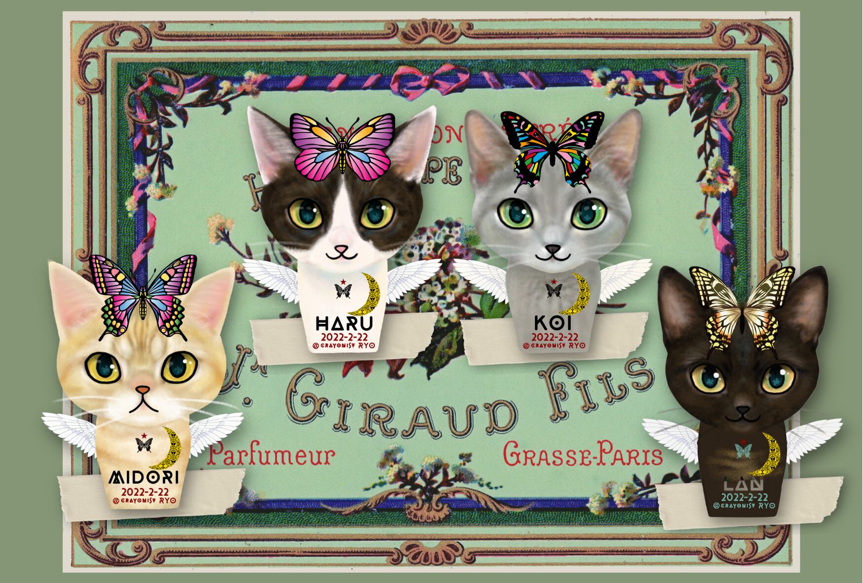 *陽ちゃん**恋ちゃん**碧ちゃん**藍ちゃん*「猫デジタル画」アクリルキーホルダー付き